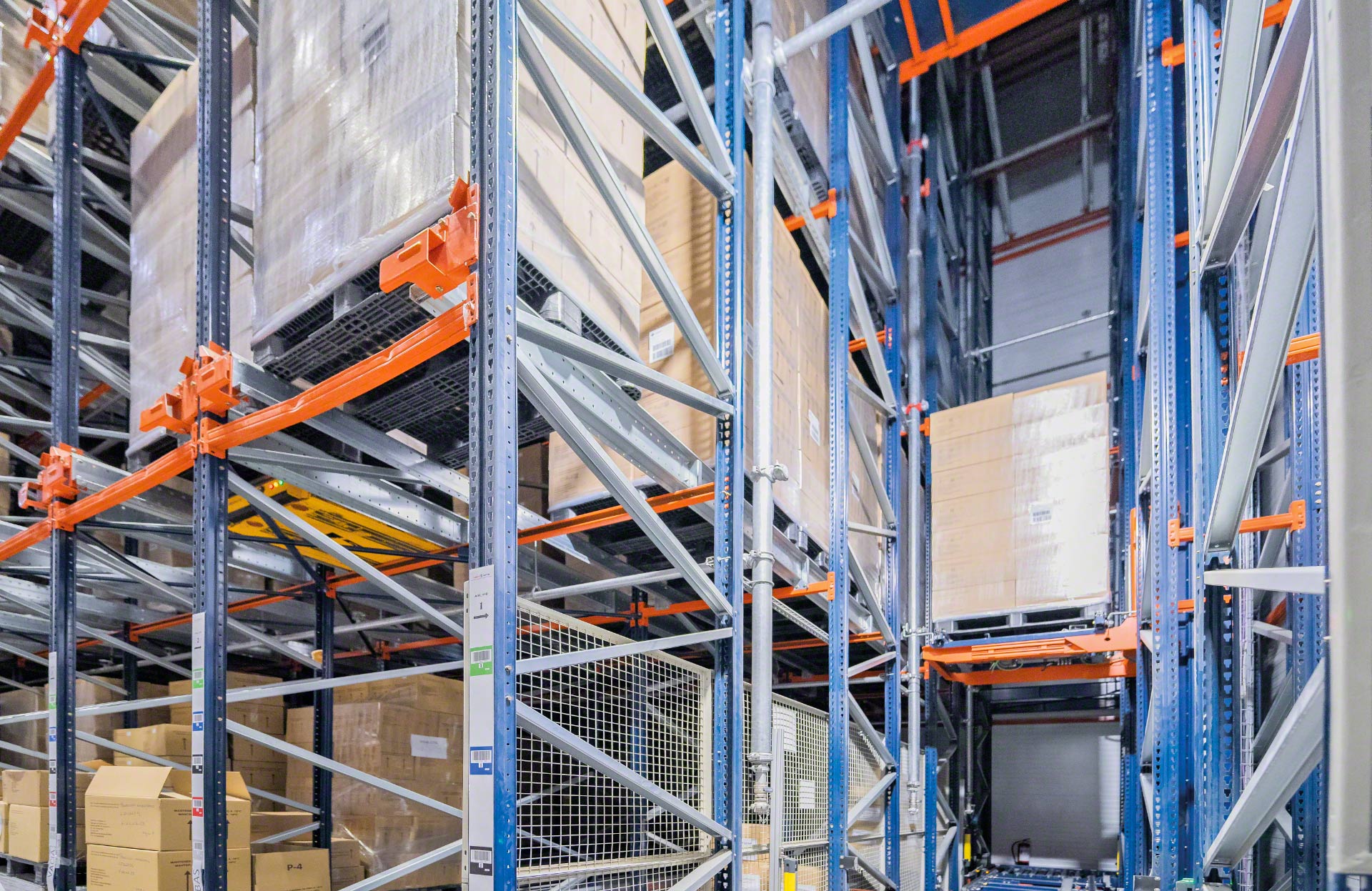 Os elevadores da Mecalux são sistemas de grande robustez que se integram facilmente tanto em armazéns automáticos como convencionais. Equipados com um motor elétrico e um transportador para uma transferência de cargas precisa, a sua implementação proporciona continuidade ao fluxo interno de paletes e permite aumentar a produtividade ao reduzir o tempo de transporte.