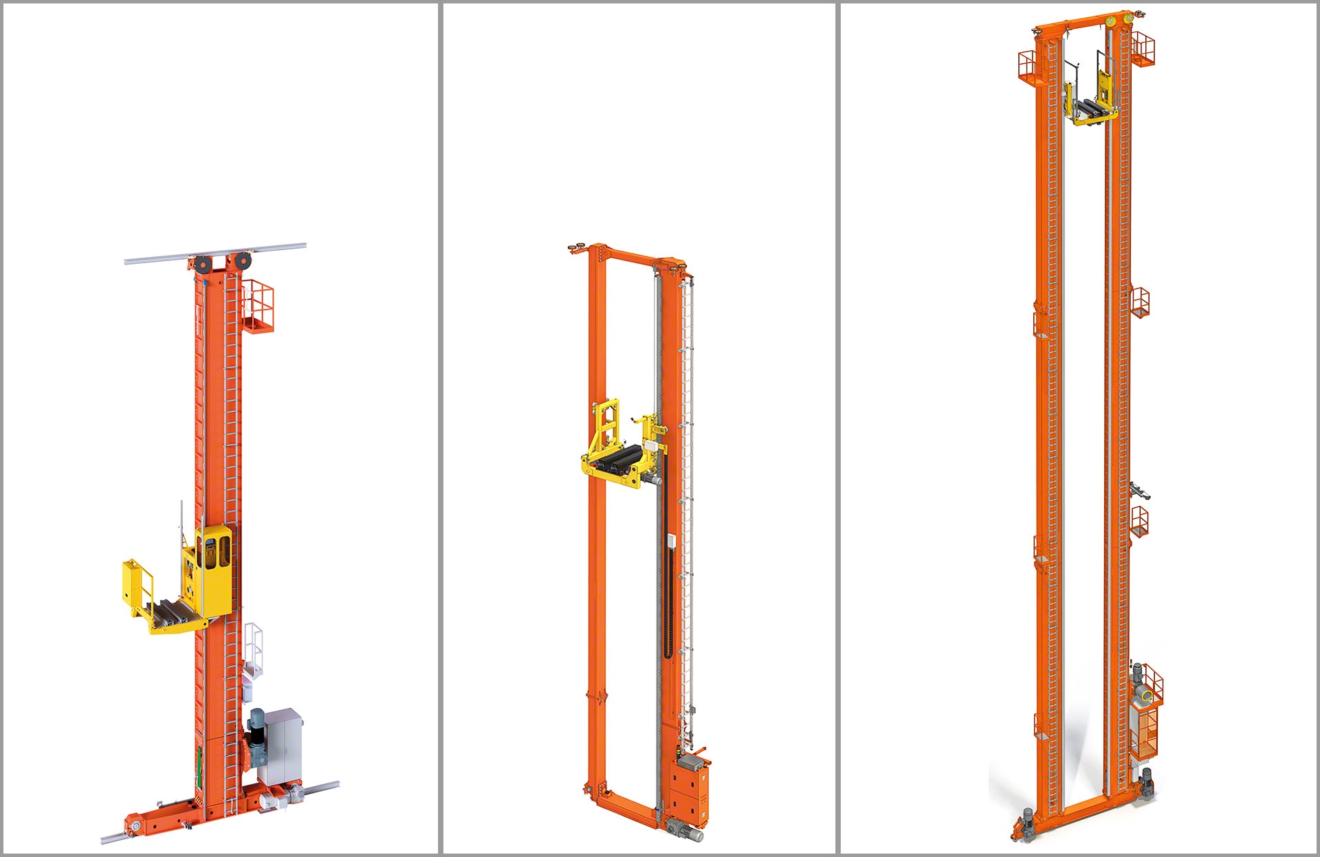 Os transelevadores são máquinas desenvolvidas para o armazenamento automático de paletes. Deslocam-se em comprimento, altura e profundidade para executar com muita agilidade e máxima precisão as operações que permitem depositar e recolher mercadoria das estantes.