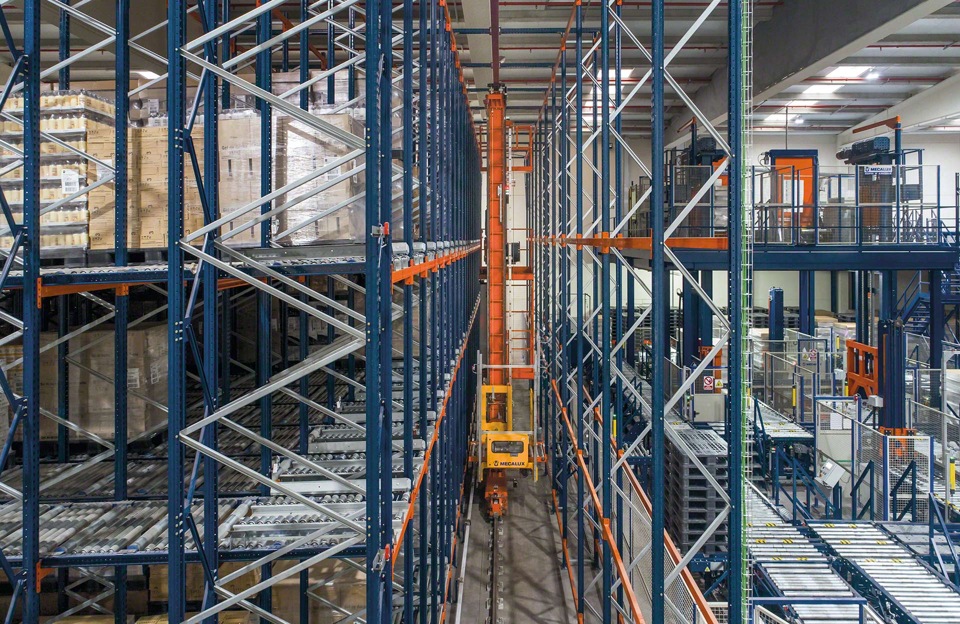Os transelevadores da Mecalux são equipamentos dotados da tecnologia mais avançada, que melhoram significativamente a produtividade do armazém e maximizam o aproveitamento do espaço para aumentar a capacidade de armazenamento. Além disso, ajudam a reduzir os erros e os riscos decorrentes das operações manuais.