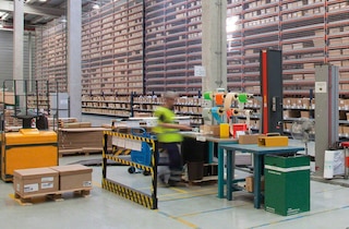 O preparador recebe as instruções sonoras para a retirada de artigos através de auriculares.