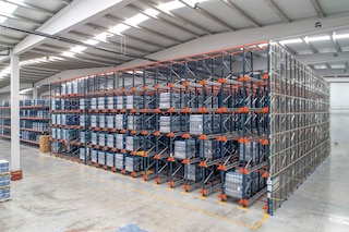- Profundidade dos corredores ou canais: cada corredor ou nível de corredor armazena paletes de uma única referência, por isso a capacidade vai depender da profundidade de armazenamento que permita e dos paletes que houver por cada referência.