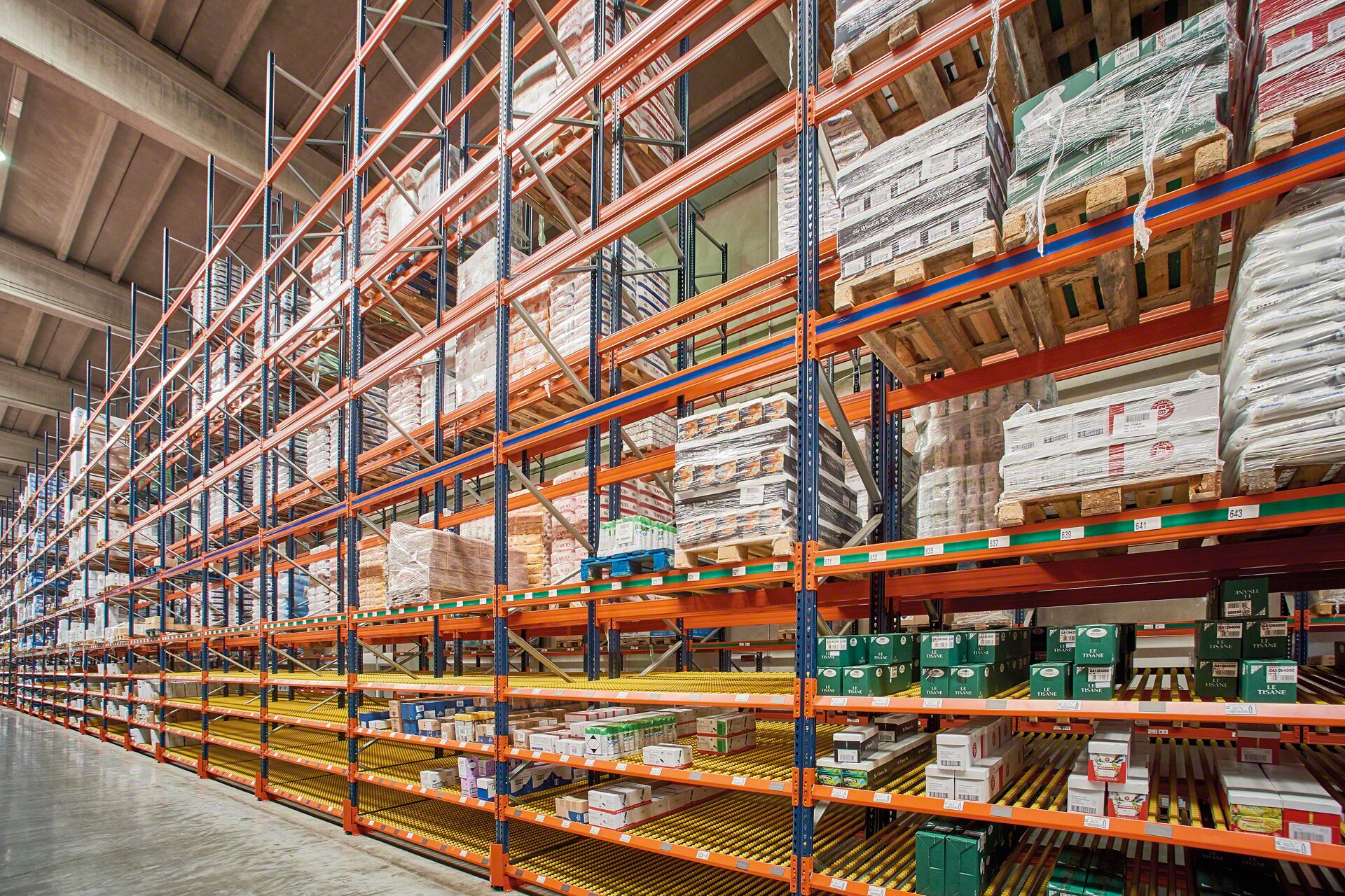 As estantes paletes são o sistema de armazenamento mais universal graças à sua versatilidade. São distribuídas ao longo de uma série de corredores interiores no armazém e oferecem acesso direto e unitário a todas as paletes, o que as torna ideais quando há uma grande variedade de referências.