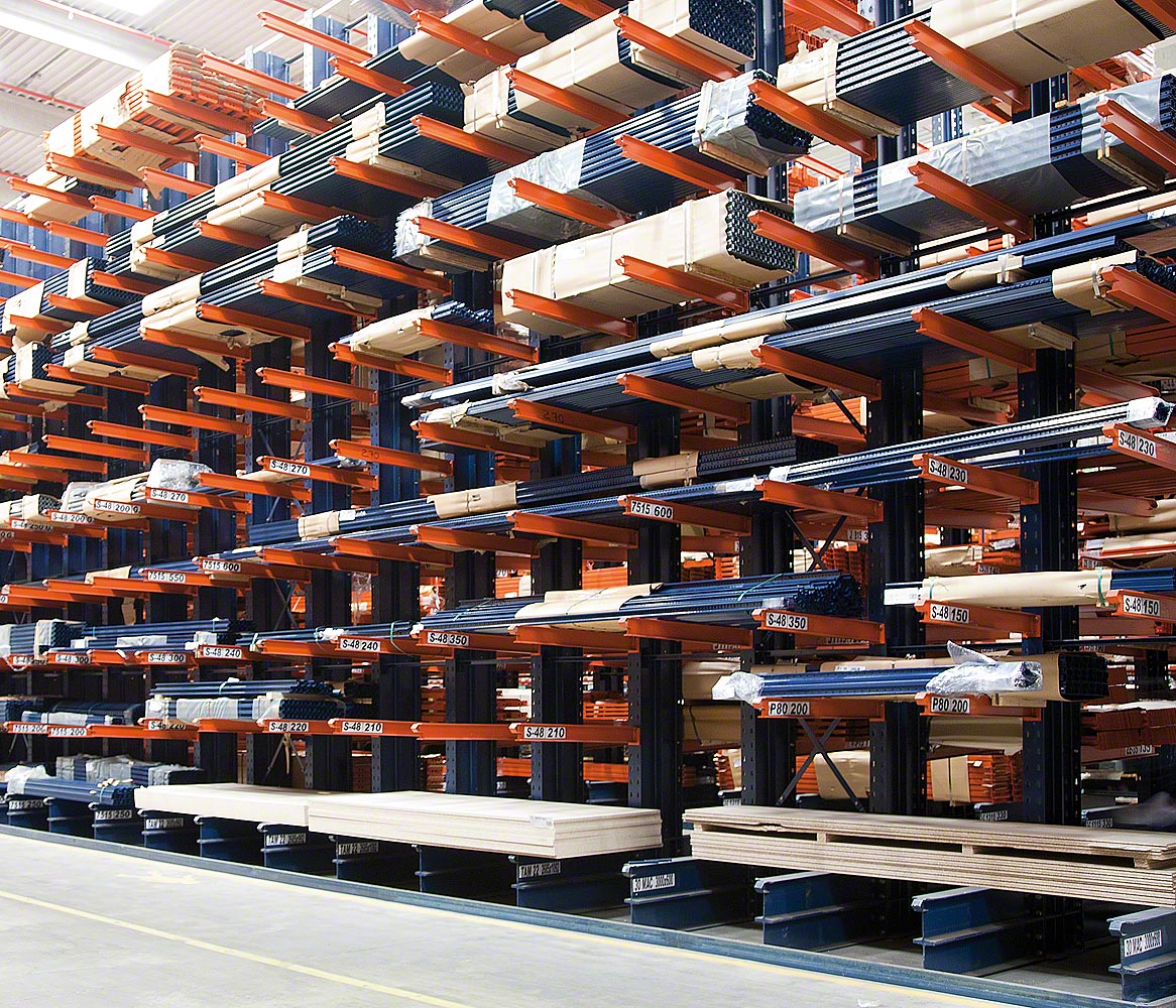 As estantes cantilever são facilmente configuráveis para se adaptarem a diferentes alturas e tipologia das mercadorias.