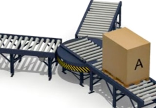 Empilhar ou liberar paletes extras em um circuito de transportador industrial